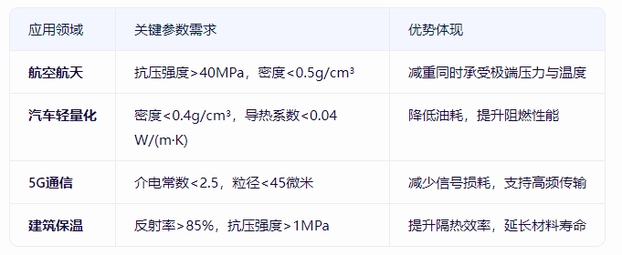 玻璃微珠輕量化材料以其密度低、功能集成、性能穩(wěn)定的特點,成為航空航天、汽車、電子等高端制造領域的關鍵材料。其參數(shù)可定制化(如粒徑、抗壓強度)進一步拓寬了應用場景,未來有望在更多領域替代傳統(tǒng)填料,推動材料輕量化革命。
